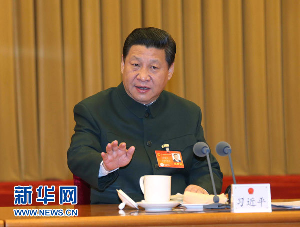 3月11日,中共中央總書記、國家主席、中央軍委主席習近平出席十二屆全國人大二次會議解放軍代表團全體會議并發表重要講話。新華社記者李剛攝