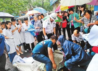 “快!找個衣服給孩子蓋住。”不知誰喊了一聲。由于下雨天冷,光溜溜的小家伙凍得渾身發紫。話音剛落,沿街門店的商戶楊女士健步如飛,回到店里把自家孩子的毛毯拿過來,熱心市民有的還把衣服脫掉……毛巾、毛毯、衣服從人縫里送進來,一層又一層地裹住嬰兒。當120急救車趕到現場,眾人把產婦抬上了救護車,所有人長長地出了口氣。