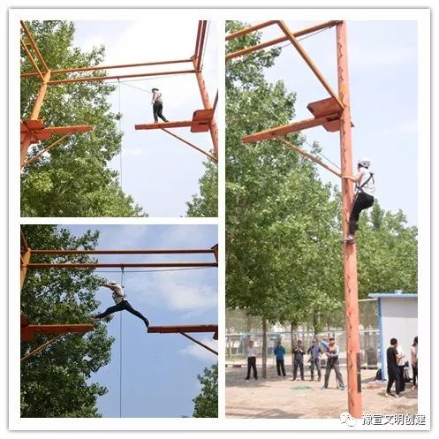 從一開始的團(tuán)隊(duì)破冰,到考驗(yàn)智慧和勇氣的互動(dòng)游戲,大家相互配合、彼此信任,英姿颯爽、奮力拼搏。在“高空斷橋”項(xiàng)目中,隊(duì)員們爬上8米高空,躍過斷橋后折回,再從空中降落。當(dāng)有隊(duì)員面對(duì)高空遲疑害怕時(shí),其他隊(duì)員都紛紛加油鼓勁,耐心等待,傳遞著集體溫暖的力量,最終所有隊(duì)員都順利完成了挑戰(zhàn)。